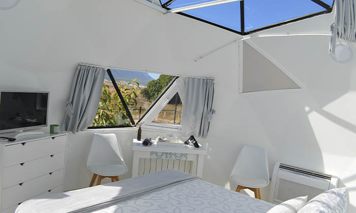 Acogedora casa rural con vistas al cielo que sorprenderá a las parejas más románticas donde encender la llama de la pasión. Después de mucho tiempo pensando en algo diferente para una escapada rural, con muchos cálculos y mucho trabajo llegamos a esta combinación, algo exclusivo, una suite que en pocos sitios podrás encontrar. Casa rural con techo panorámico con vistas a las estrellas, jacuzzi exterior privado, frigorífico, cafetera, baño, una forma totalmente distinta a lo que puedas ver. Este domo geodésico tiene unas vistas a la sierra increíbles. ¿Qué más puedes pedir? Es el regalo ideal para una ocasión especial o simplemente date el capricho si lo tuyo es el turismo rural. No te lo pierdas, no olvidarás esa noche bajo las estrellas con tu pareja y todas las comodidades.